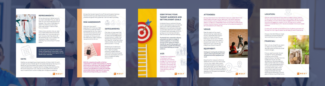 While there is no one-size-fits-all approach, this comprehensive guide aims to provide thought provoking insights into the critical key components to consider when putting on a Martial Arts event, such as summer camps, holiday clubs and after class additional activities. Explore our guide on the ‘Top Tips for planning and running a successful Martial Arts event’, looking at setting business goals, budgeting, marketing, logistics, health and safety and lots more.